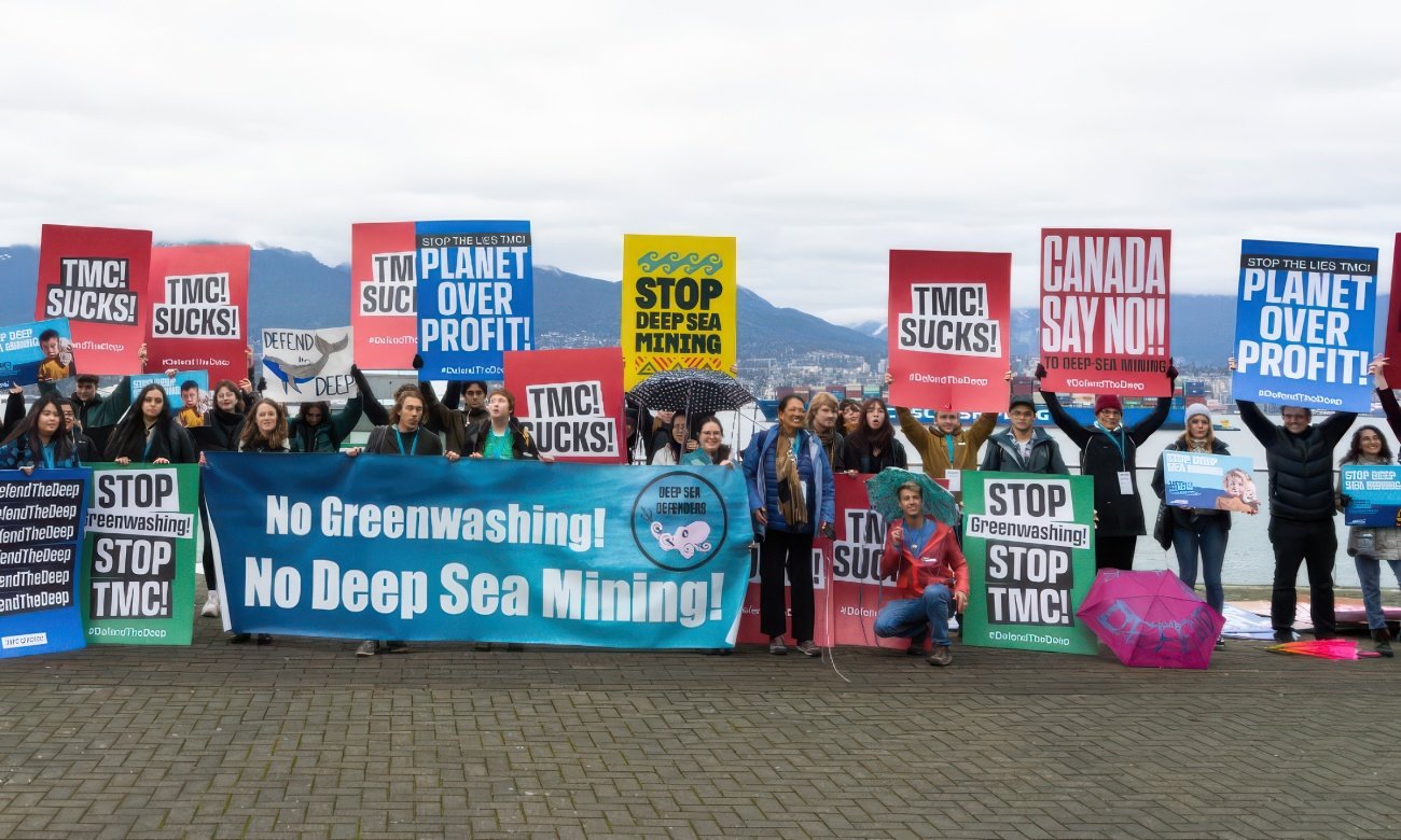 Jose Reyeros among activists at a demonstration to stop deepsea mining in 2023. Photo by Jacob Powers